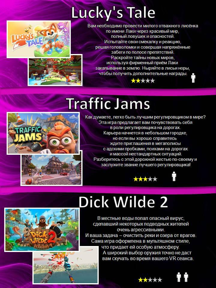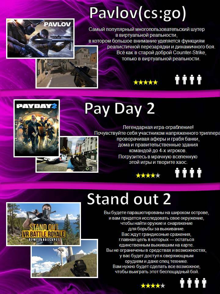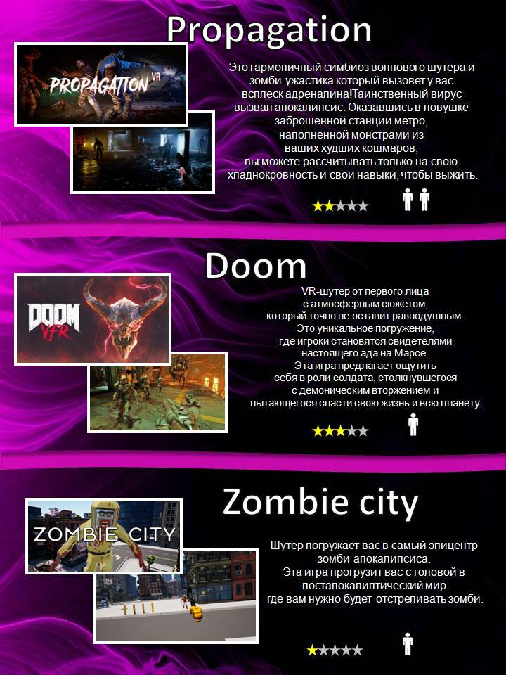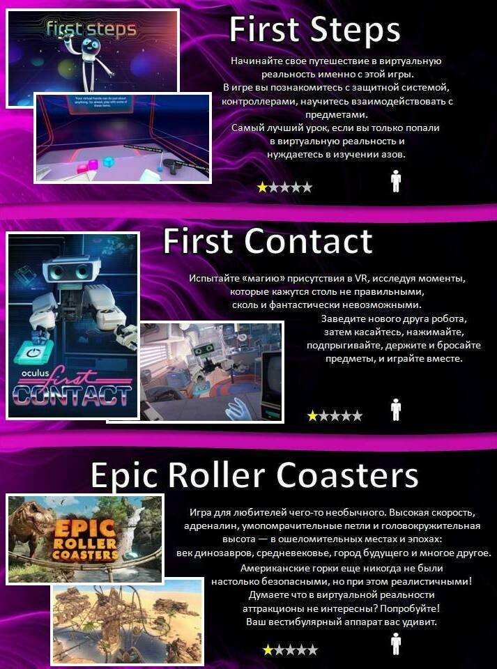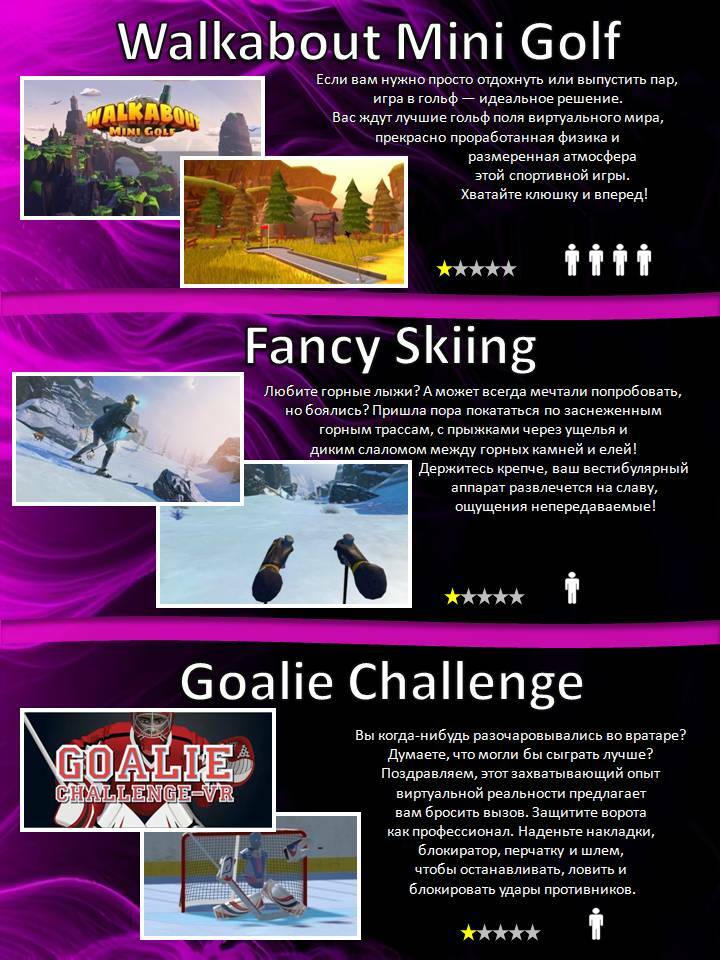 У нас установлены 4 VR-станции, с которыми можно отправиться в увлекательные приключения, полные адреналина.
